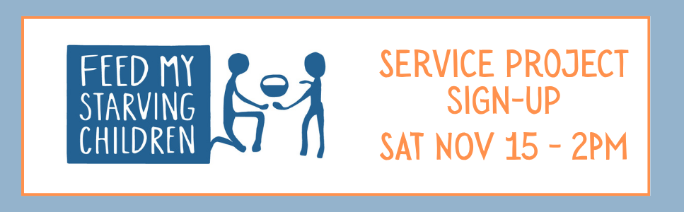 Join us for a family-friendly service project on Sat., Nov. 15 at 2:00 p.m. We need 30 volunteers to help pack food for Feed My Starving in Libertyville. There are options for lunch and carpooling. Please fill out this form and click submit.